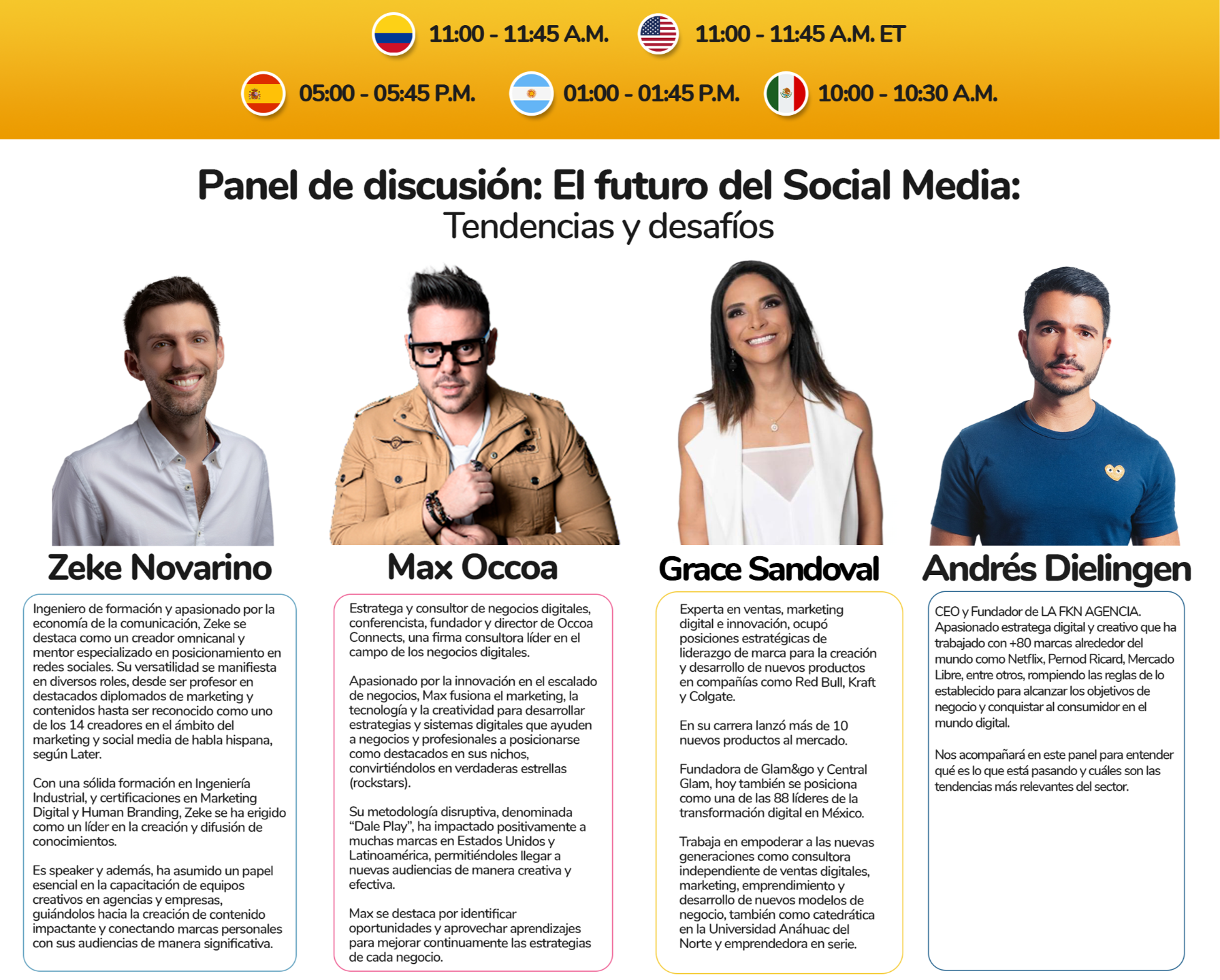 • Además, contarás con un panel de discusión exclusivo donde expertos explorarán las tendencias y desafíos que configuran el futuro del social media.