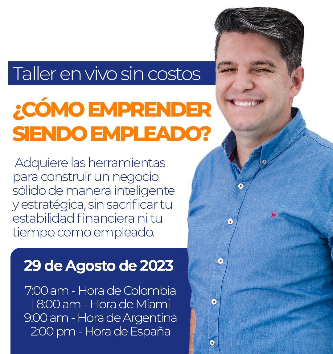 En este taller sin costo descubrirás cómo transformar tus habilidades, experiencias y conocimientos en un trampolín hacia el emprendimiento y todo esto, sin poner en riesgo tu primera fuente de ingresos que es tu actual empleo.